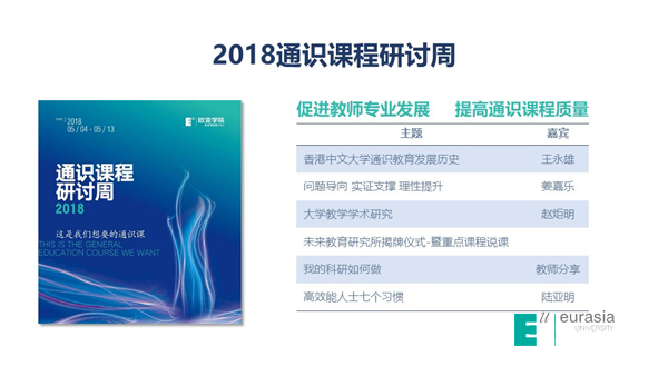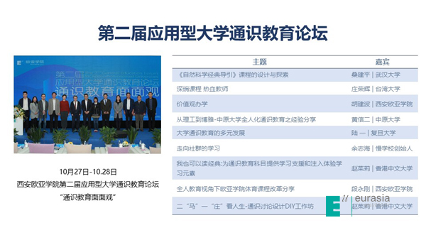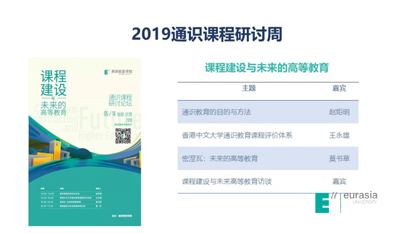 2020年4月,“欧亚通识TALK”应用型大学通识教育系列在线论坛正式上线,本次论坛共开设三个主题专场:通用职场能力、写作能力以及欧亚通识课程。为共享通识素养与通识能力的知识与实践经验,探索通识教育未来开放线上交流平台。