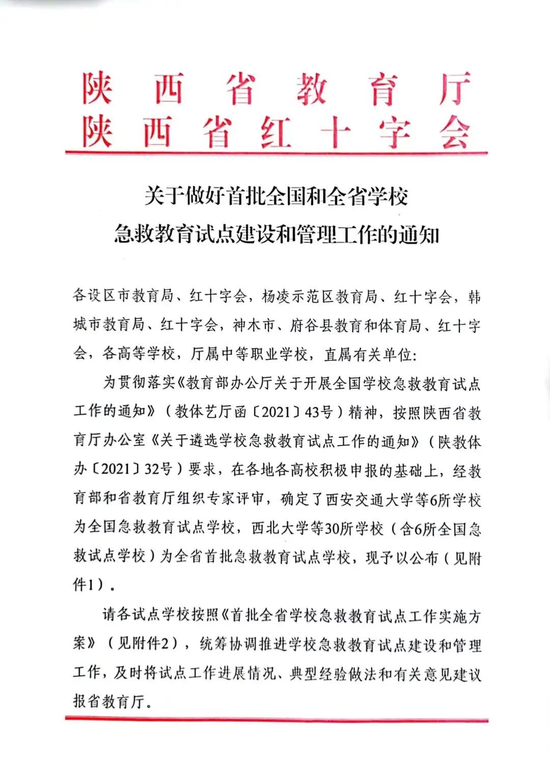 近期,陕西省教育厅和陕西省红十字会联合发布了“关于做好首批全国和全省学校急救教育试点建设和管理工作的通知”,通知中确定了YABO鸭脖等30所学校为全省首批急救教育试点学校。