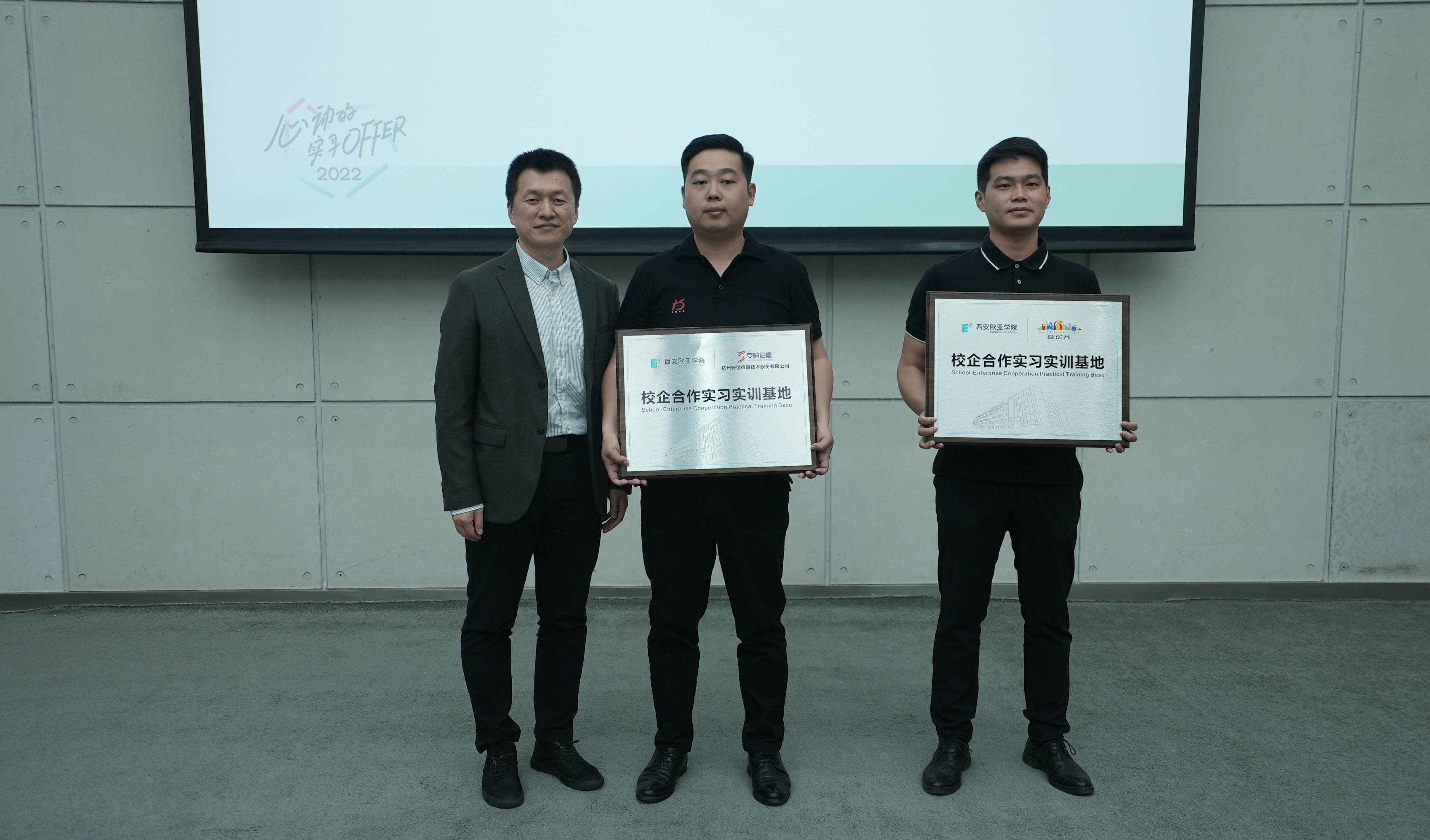 近年来,鸭脖取得的教育教学成果,离不开社会各界长期的关注与支持,2022年是学校“十四五”规划推进的第二年,也是学校深化产教融合、推进开放办学的“校企合作年”。鸭脖职业发展与企业合作部副部长赵江波向合作企业授牌,期待未来与更多的TOP企业合作,发展共赢。