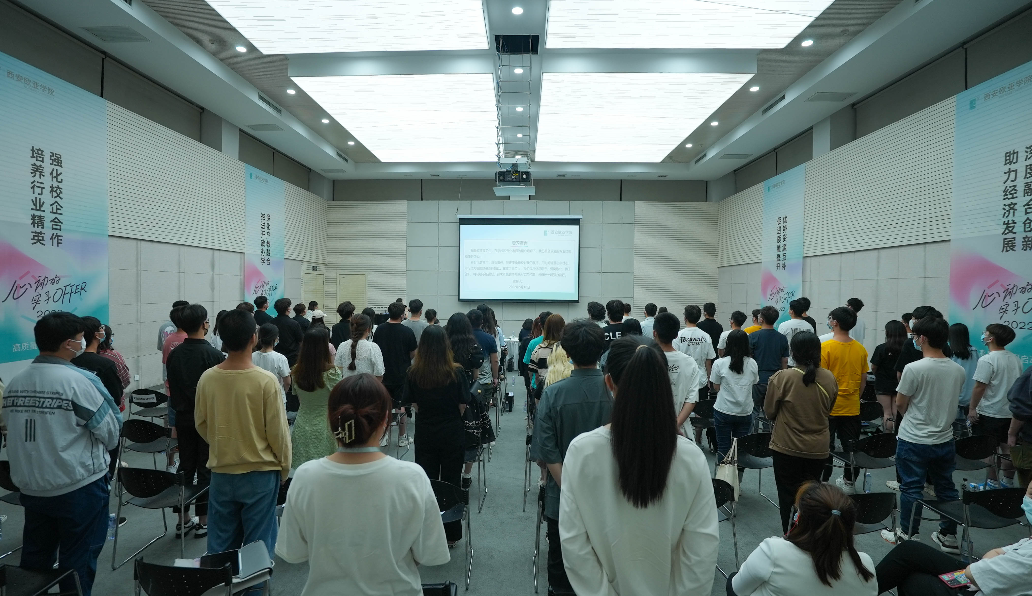 参与本次活动的嘉宾有鸭脖校长助理王艳,浙江吉利控股集团西北大区经理宋少杨,西安沣东华侨城发展有限公司欢乐谷旅游分公司HRD刘晨,安恒信息技术股份有限公司销售经理刘波,以及合作企业代表、学校相关职能处室领导、各二级学院实习就业主管院长、实习专员老师以及2023届实习学生代表们。
