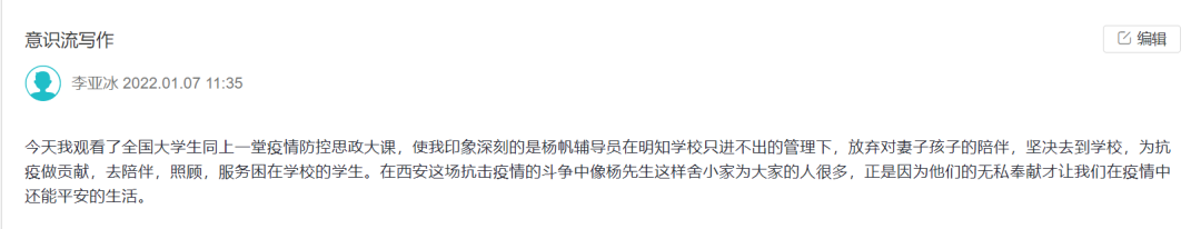 互动1:课程侧重结合写作与当下的时代背景,让学生从观察自我出发,思考自己拥有什么?自己当下能够为社会做什么?感受疫情带来的人与环境的变化。