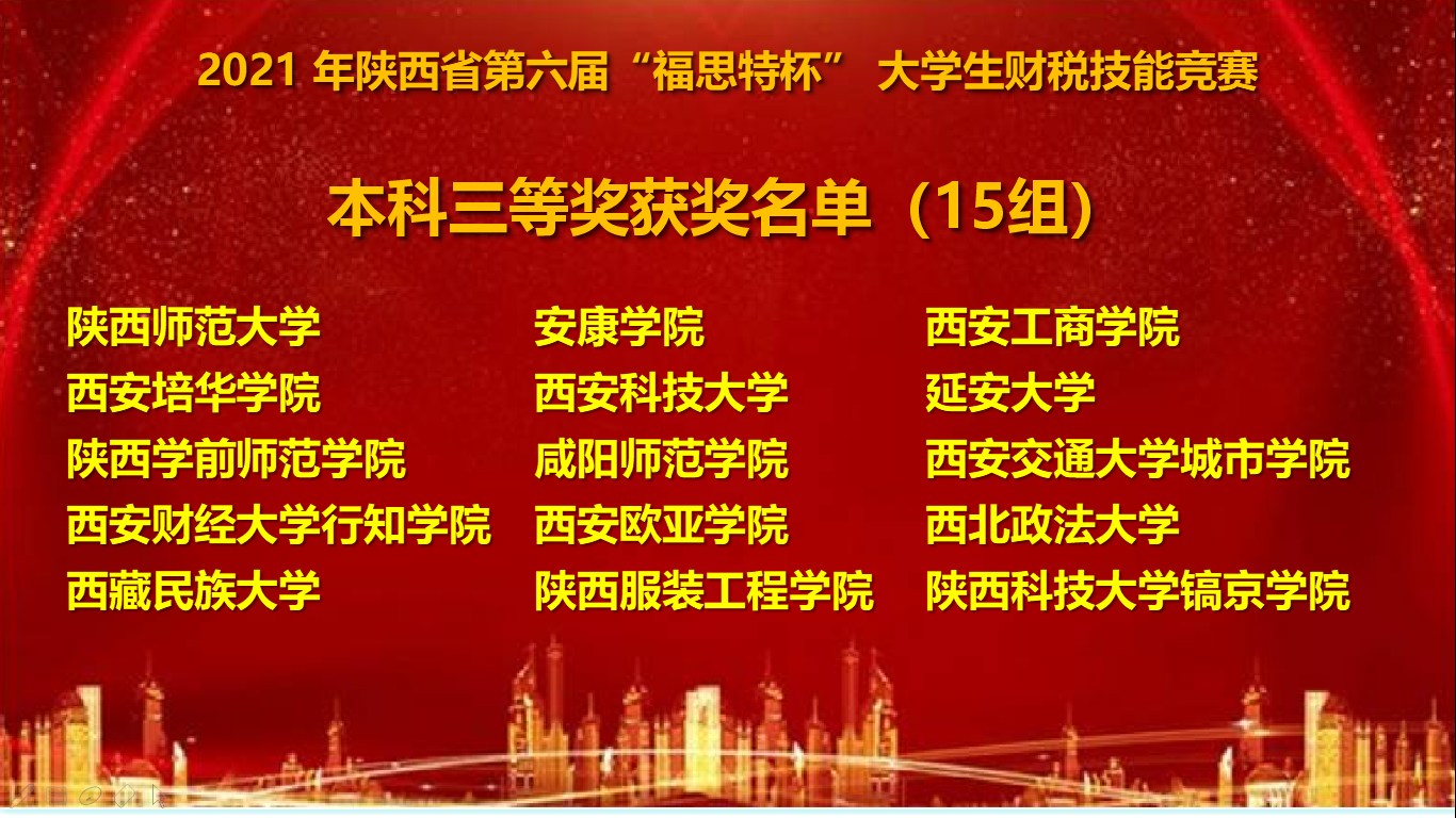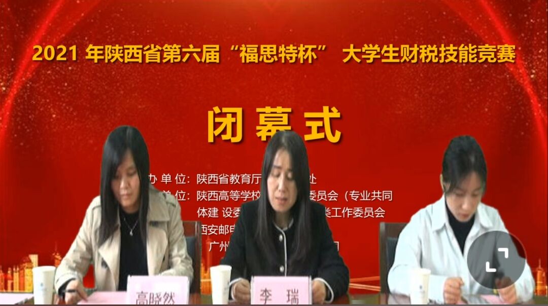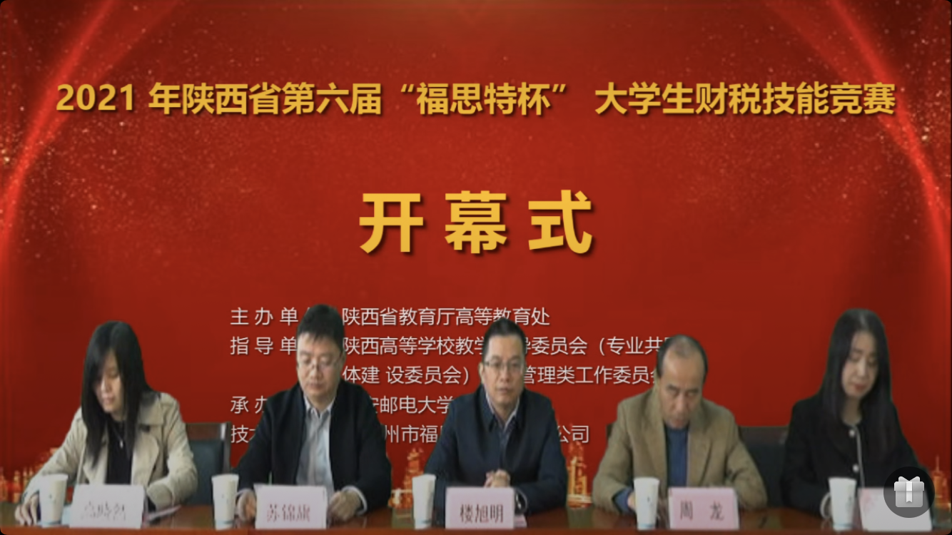 2021年10月23日,由陕西省教育厅高等教育处主办,西安邮电大学承办,广州市福思特科技有限公司提供技术支持的2021年陕西省第六届“福思特杯”大学生财税技能竞赛在线上拉开帷幕。西安交通大学、陕西师范大学、长安大学、西安外国语大学、西安财经大学、西安石油大学、西安邮电大学等省内 51 余所高校、60 余支队伍,200 多名学生在线上同时竞技。鸭脖会计学院由赵欢老师带队,郭君艳、温云霞、谢应丹、袁帅彪 4名同学组队参加了此次赛事。竞赛中鸭脖代表队沉着应对,稳定发挥,克服疫情影响,充分展现了财务人员良好的职业素养,经过三小时的激烈角逐,最终荣获三等奖。
