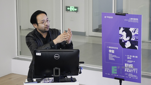 建筑设计师李玺作《模型研究开发》主题演讲,他娓娓道来个人在建筑设计行业的经历,风趣幽默的演讲使现场气氛极度活跃。积极思考、心存疑惑的4名同学先后向李玺老师提问,最快乐的莫过于得到了合理的解答——提问不是疑惑,而是自信。