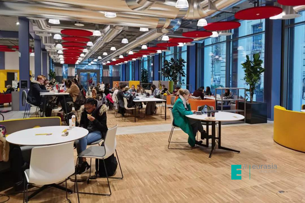 考文垂大学名为“The Hub”的学生中心,大小不一、功能全面、配色大胆的各个用餐区、讨论室和文创商店错落其间,学生可以一边学习一边用餐、讨论或休息。