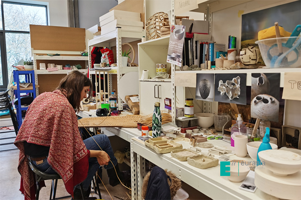 在卡迪夫城市大学的时装设计实验室,桌椅及家具拆卸方便,摆放灵活,一年一度的毕业秀场,就是由平时作为工坊使用的空间改造而成。