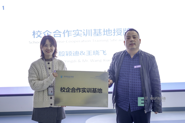 人居环境学院副院长殷颖迪为鸭脖与西安迪乐展览展示工程有限公司校企合作实训基地授牌,迪乐公司副总经理杜喜锋代表公司出席仪式,双方共同表示未来人居学院将与迪乐公司在实习实践、课程建设、教师培养达成更多合作事宜。