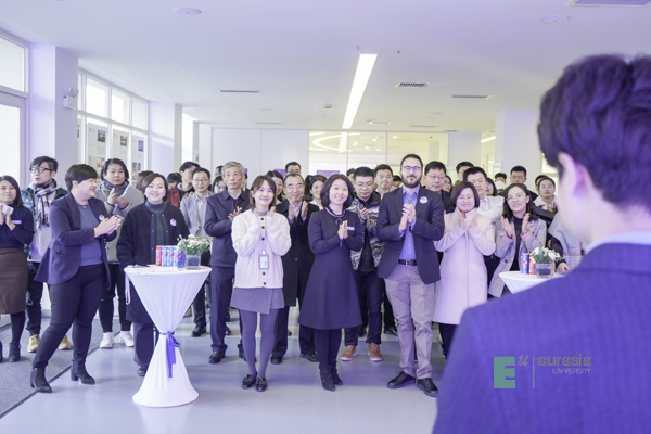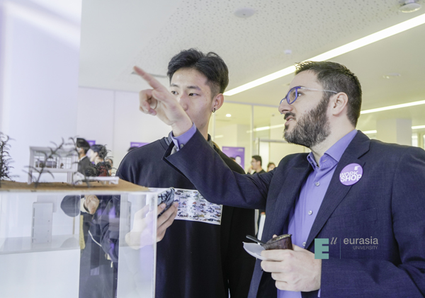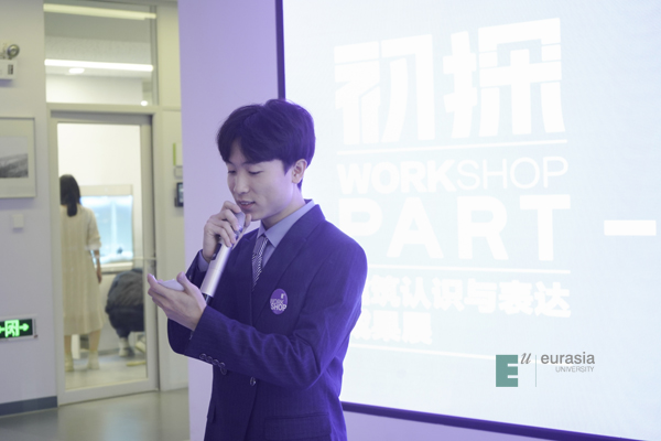 Antonino教授为初探-Workshop成果展发表贺词。他说,这不是他第一次来到欧亚学院,但是他依然很荣幸能够和欧亚学院有所合作。发言中,他强调了两点:一是欧亚的教学模式充满了活力和创造力,这一点跟意大利很像,可以充分发挥学生的自我能动性;二是中国是一个快速发展的国家,充满了各种机遇,他希望欧亚的学生可以把握机会,努力学习,实现自我价值。