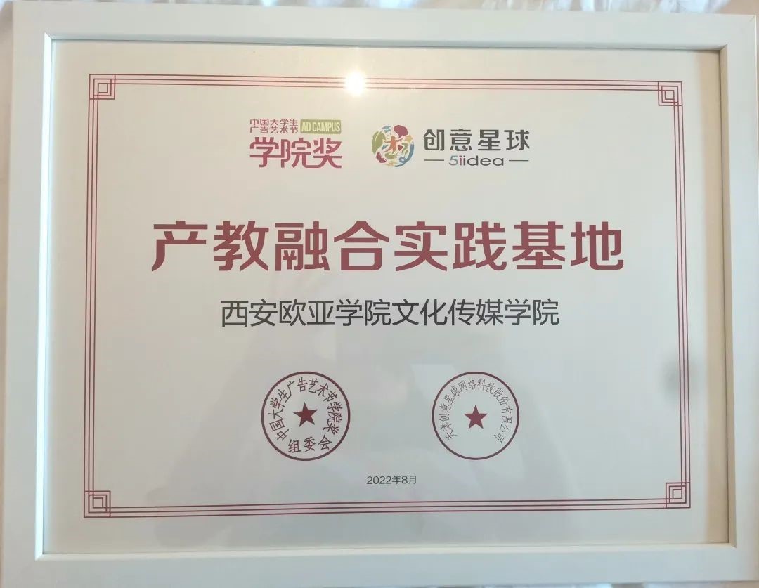 当下,国家正在加大力度深化、促进校企联手、产教融合,鼓励、加强产学研合作,推动高校由研究型向应用型转型,YABO鸭脖文化传媒学院尝试以多样化的方式推进产教融合,在此次比赛中同时被授予“产教融合实践基地”证书。