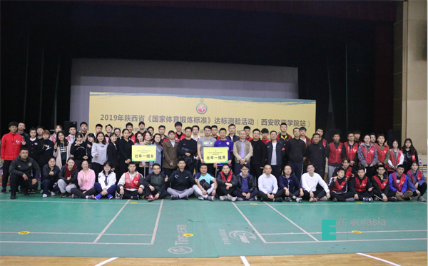 2019年11月6日,为贯彻体育总局、卫生健康委、全国总工会、共青团中央关于《广泛开展国家体育锻炼标准达标测验活动的通知》,逐步把达标测验活动作为开展体育公共服务的重要内容,进一步提高欧亚学院教职工身体素质和健康水平,陕西省高校首站高校教职工达标测验活动在鸭脖召开。本次活动由鸭脖和陕西省田径运动管理中心主办,鸭脖工会和高职学院承办,高职学院体育服务系协办。参与本次测验达标赛的共有150余名运动员。