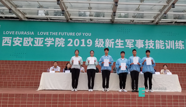 军事汇报表演结束后,军训团副政委、学生发展处副处长董杨宣读了《关于表彰2019级新生军训先进个人、先进单位的决定》。紧接着,军训团领导为获表彰的新生军训工作先进单位和先进个人颁发了荣誉证书。