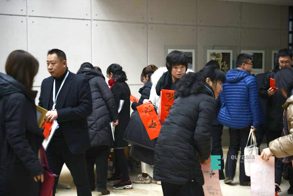 活动现场翰墨飘香,书法家饱含热情,泼墨挥毫,行书、楷书、隶书各显其能,笔走龙蛇,一幅幅精美的春联就呈现在眼前。每一幅精美的对联就是对教职工的每一份祝福,前来领取春联的教职工络绎不绝。领春联的教职工可以自己设定春联内容,也可以从现场提供的近百幅对联中挑选。教职工们手捧着吉祥喜庆的春联,喜悦之情溢于言表,整个图书馆洋溢着新春祥和的气氛。