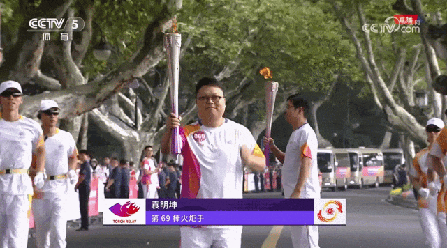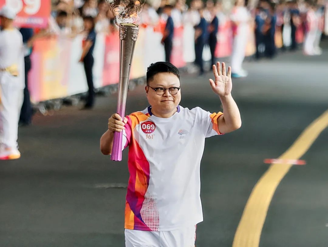 (图一)杭州亚运会火炬传递杭州站第69棒火炬手袁明坤