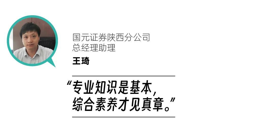 2014年国元证券开始筹建西安营业部时,王总就加入了这个团队,见证了 2018年西安分公司成立、一直到现在不断发展壮大的全过程。他认为券商行业正在经历一次全新的洗礼与升级,未来将着重为企业及个人提供财富管理、融资运作等服务,对从业人才的能力要求也会更高。除了要拥有对整个金融行业风向的判断、建立完整的知识体系,更需要学生拥有正确的自我认知和学习能力。