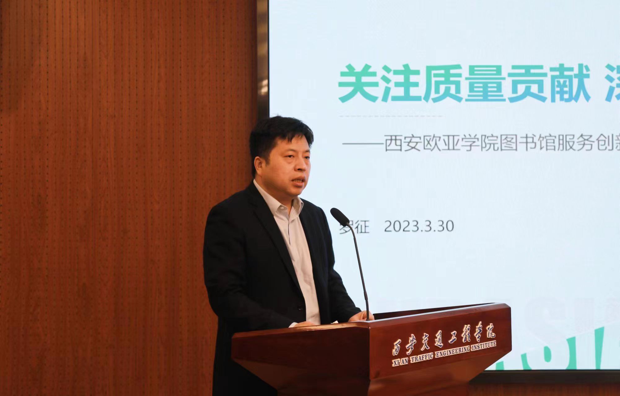 2023年3月30日,“守正创新,提质增效,促进民办高校高质量发展——陕西省民办高校图书馆建设与发展高层论坛”在西安交通工程学院召开,鸭脖图文信息中心应邀参会并做主题报告,西安交通工程学院执行校长曹庆年教授到会指导并致辞。此次高层论坛由西安交通工程学院图书馆和清华同方(北京)技术有限公司陕西分公司联合主办,省内20余所民办高校、独立学院共60余人参会。