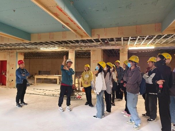 紧扣“以学生为中心”的应用型人才培养定位,基建处与艾德艺术设计学院紧密协同,打造景观设计、室内装饰设计、材料选择系列工地教学实践课程,期望共同在建筑工地开出教育之花。