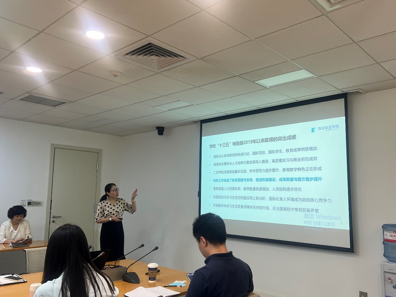 随后,科研处副处长吴丽娟老师通过科研与社会服务规划如何支撑学校“十四五”规划相关目标达成来解读科研与社会服务“十四五”规划。首先她介绍了科研工作在“十三五”期间取得的成绩,再通过分析学校“十四五”总体目标分解出科研与社会服务的具体目标,而后从目标出发倒推出科研及社会服务工作在“十四五”期间的实施策略。最后从明确科研方向、开展科研平台建设、科研队伍建设、提升社会服务能力和机制保障建设五方面详细介绍了如何以科研及社会服务助力学校“十四五”发展总体规划目标的达成。