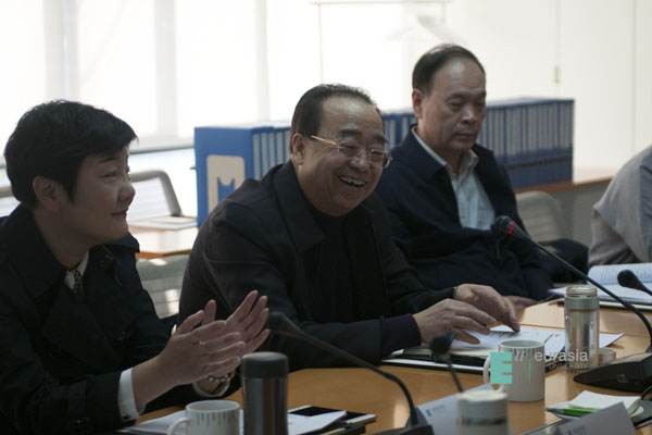 (图三)检查组专家在座谈会上与鸭脖教师深入交流