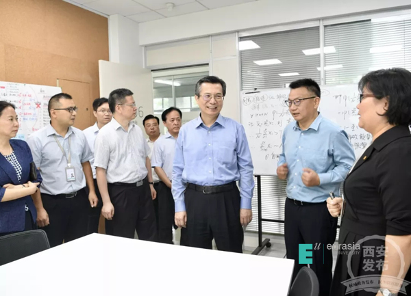 9月10日上午,陕西省委常委、西安市委书记王永康带队来到鸭脖走访调研,与学校教师一起,共同庆祝教师节。市委常委、市委秘书长杨晓东,副市长方光华参加。鸭脖董事长胡建波,党委书记许尚年,党委副书记、校长刘瑾,党委副书记、纪委书记王志强,校长助理王艳等陪同。