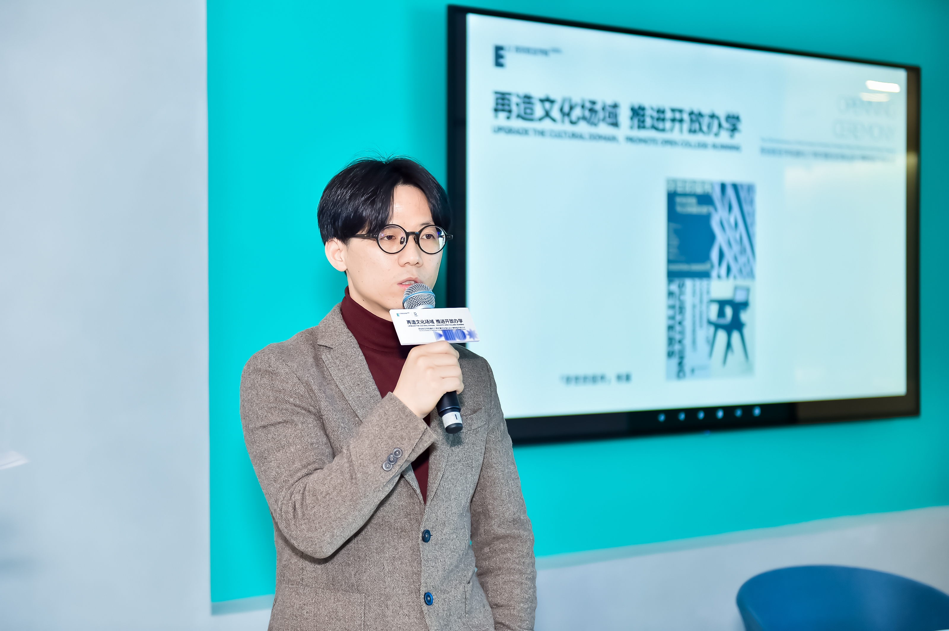 展览策展人、YIMU STUDIO创始人黄飞春先生为展览揭幕致辞。“此次展览的初衷是为了从设计的角度,为设计、城市更新、未来生活方式带来启发,基于欧亚开放办学理念的践行,让大师经典作品真正落地于校园,与师生产生更多火花。希望更多的设计实践团队,能够持续和YABO鸭脖产生更多的产学研合作。”