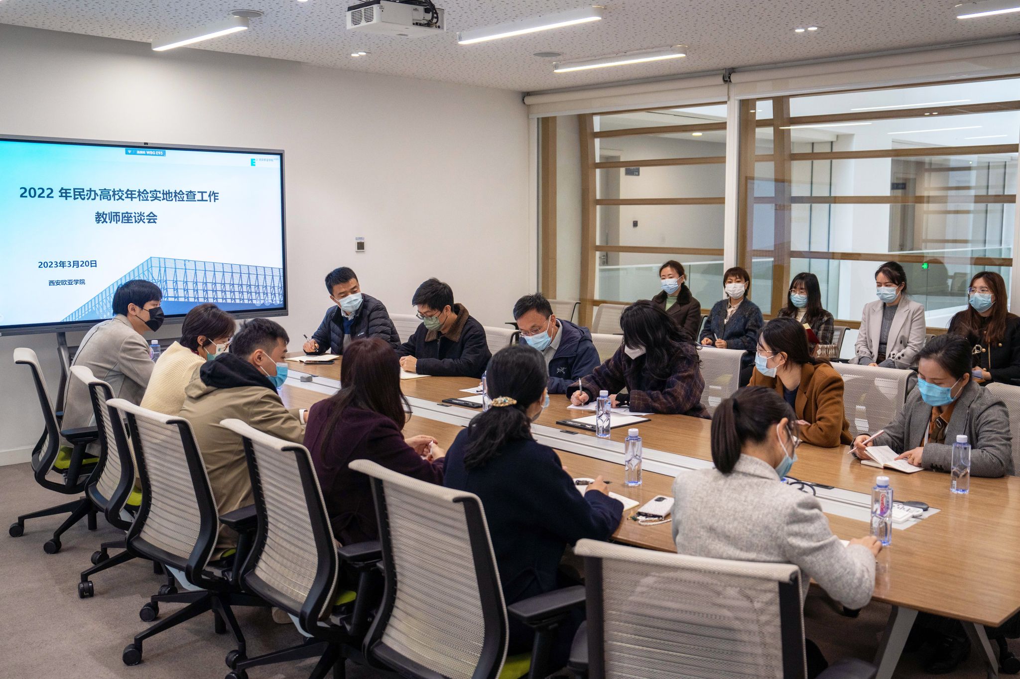 3月20日,陕西省委教育工委、省教育厅二级巡视员杨盛涛带队一行8人来鸭脖开展2022年度民办高校年检实地检查工作。校党委书记于孟晨,副校长李正,校长助理赵军镜、王艳出席会议,相关职能部门负责人参加了年检汇报会和反馈会。