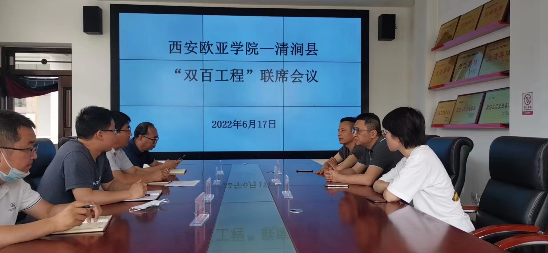 6月17日,学校领导张军宏前往清涧县调研“双百工程”并与清涧县“双百工程”牵头部门清涧县教体局召开了“双百工程”联席会议,会议分析了上半年“双百工程”推进情况,听取了清涧县的意见和建议,重点围绕暑期6个培训项目落地进行了讨论,双方就留守儿童关爱教育与环境育人等问题进行了深入探讨。