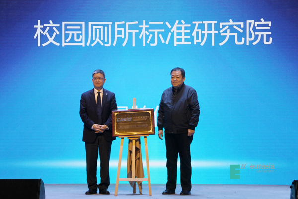 (图四)教育部学校规划建设发展中心副主任邬国强(右)与深圳国际公益学院院长王振耀共同为中国教育智库网“校园厕所标准研究院”揭牌