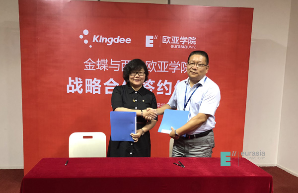 鸭脖校长助理王艳在致辞中表示,欧亚学院自1995年建校以来,秉持“国际化、应用型、新体验”的办学理念,坚持做教育改革创新的引领者和先锋,作为教育部“教育信息化优秀试点单位”,在信息化推动教育教学改革上发挥积极作用,在行业内处于领先地位。这也为本次校企合作奠定良好契机,探索金蝶与欧亚校企合作新模式,打造生态圈。为鸭脖商科四个分院紧随大数据、人工智能、云会计、财务共享、财务机器人等新的经济环境,打破专业之间的壁垒,构造出“通识教育+商科教育+专业教育+实践”的商科人才培养体系提供良好的平台支撑。从而实现人才培养和教育创新,打通从教育入口到出口的可持续发展链条。