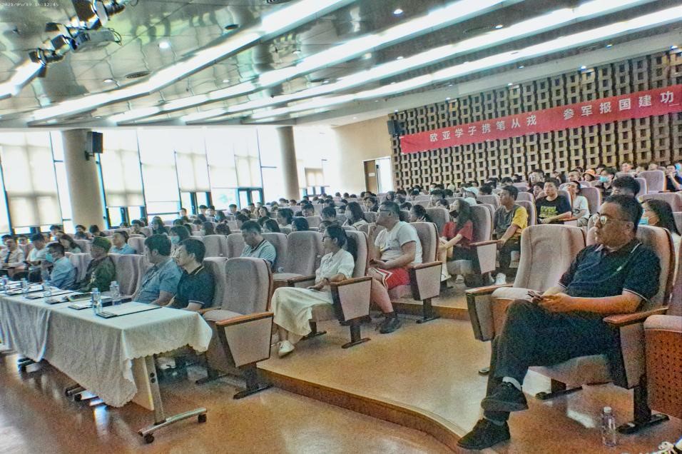 又是一年征兵季,参军报国正当时。为进一步贯彻落实国家大学生征兵入伍政策,鼓励和引导鸭脖大学生积极参与应征入伍。近日,鸭脖在图书馆学术报告厅隆重举行“投笔从戎思报国 欧亚学子志千里”为主题的2021年秋季大学生征兵政策宣讲会活动。