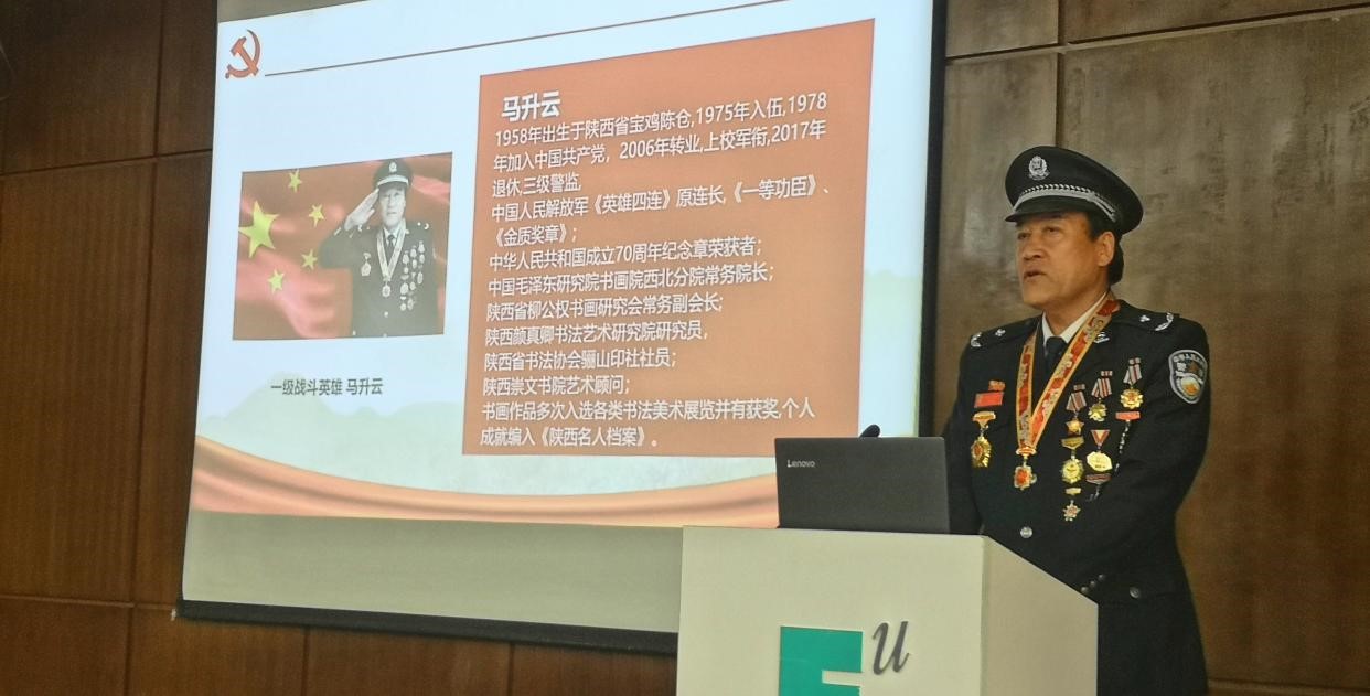 这次活动,学校也将战斗英雄马升云和对越自卫反击战老兵陈斌请到了现场。同时请原中国人民解放军英雄四连连长,对越自卫反击战一等功臣,金质奖章、中华人民共和国成立70周年纪念章荣获者、战斗英雄马升云,为大家做精彩演讲。
