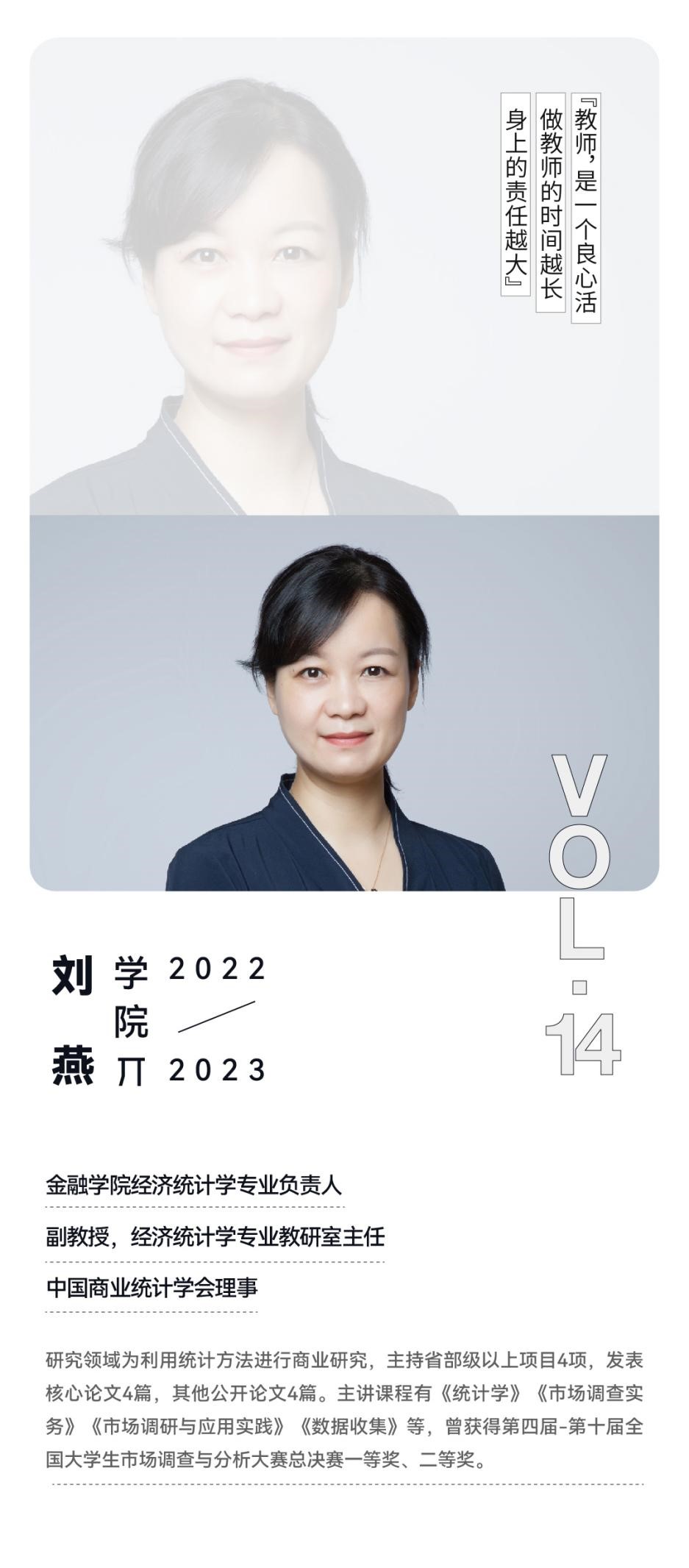 做为金融学院经济统计学专业的负责人,刘燕老师常常要与数据打交道,在工作中分析轻重缓急、有主次逻辑是她最理性的一面。但在生活中,她形容自己是个“因共情能力太强,爱陪着大家流眼泪”的人,对待学生更是有点“妈妈心态”,总要事无巨细的操心与叮嘱。因此,她是很多学生心中“最喜爱的老师”。