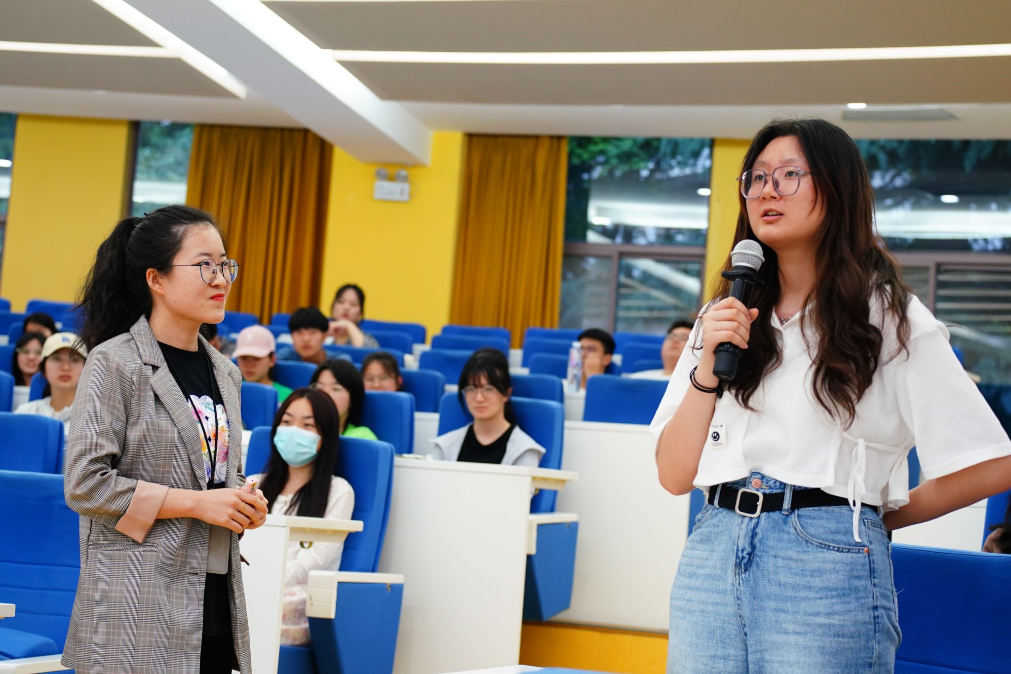 6月14日,三位2022级优秀导生代表结合自身经验从导生工作意义、职责、与新生们的沟通技巧、注意事项等等进行了分享。优秀导生周婧昱表示:““责任心”与“耐心”是导生最重要的品质”。作为导生,应该明确自己的责任,以身作则,有耐心,多观察,总结前辈经验,发挥自身优势,助力新生顺利开启大学生活。此次经验分享会为2023级导生现场答疑解惑,同学们积极参与,踊跃发言。张紫怡同学表示:通过学姐们的分享,使我更加确信选择导生的意义,希望尽快应用到导生工作中去。