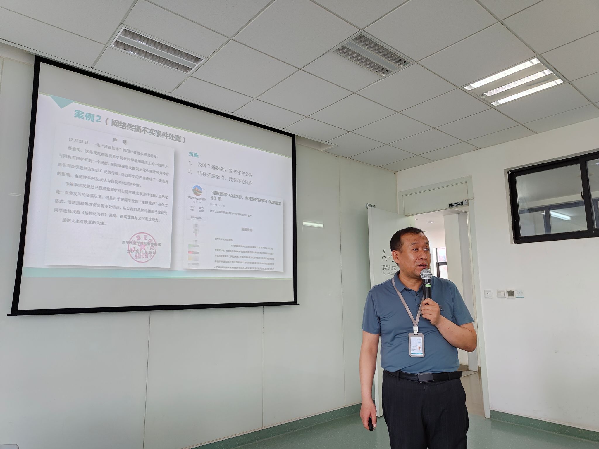 6月7日,学生发展处督导田志刚老师为2023级导生开展了突发事件处理专题培训。田志刚老师从突发事件的鉴别和实操详细介绍了导生在面对校园突发事件的应对措施。田志刚老师通过常见案例分析进一步强调:作为一名导生,首先应该明确自身定位与职责,遇到突发事件,及时上报,及时跟进,做事情不能蛮干,要灵活变通。现场气氛活跃,同学们积极热情参与,反馈较好。沈俊屹同学表示:通过本次培训,使我更加了解《YABO鸭脖学生手册》的相关内容及校园突发事件处理流程,获益匪浅。