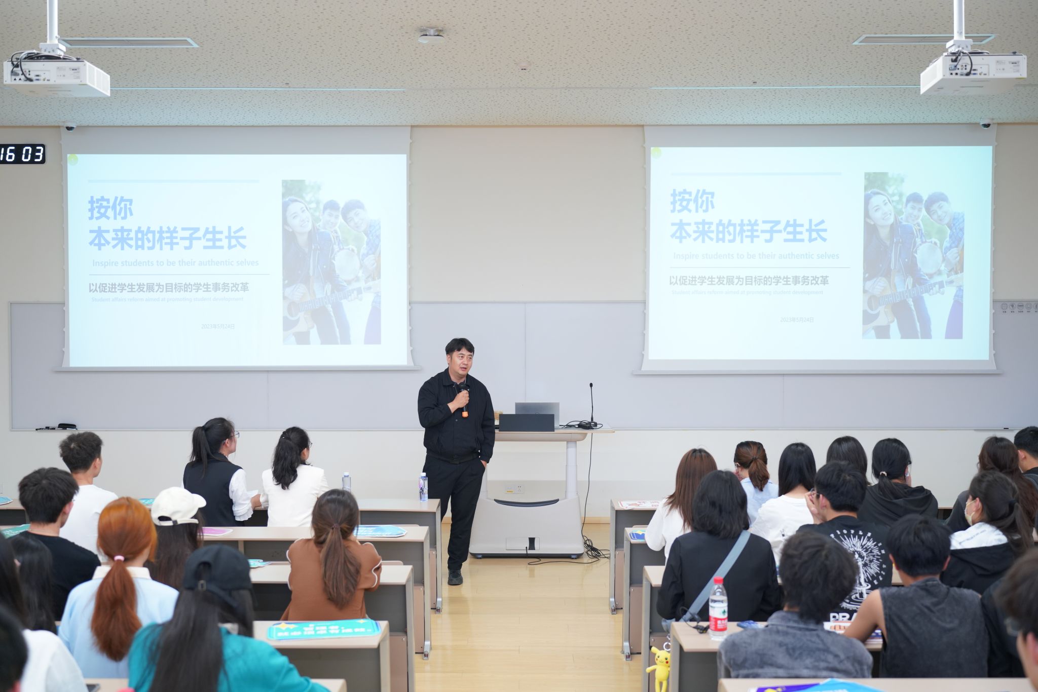 5月24日,学生发展处副处长张成老师通过一张张老照片的展示,向2023级导生介绍了学校发展建设、设施更新沿革、青年社区文化发展等,进一步强调欧亚学院始终坚持“以学生为中心”的理念,为学生的成长发展匹配最舒适的设施与环境,以期实现按照你本来的样子生长的愿望。让导生以新的视角,重新认识欧亚、了解社区文化,感受学校的人文关怀,通过朋辈的相互教育与影响,提升学生实际获得感。