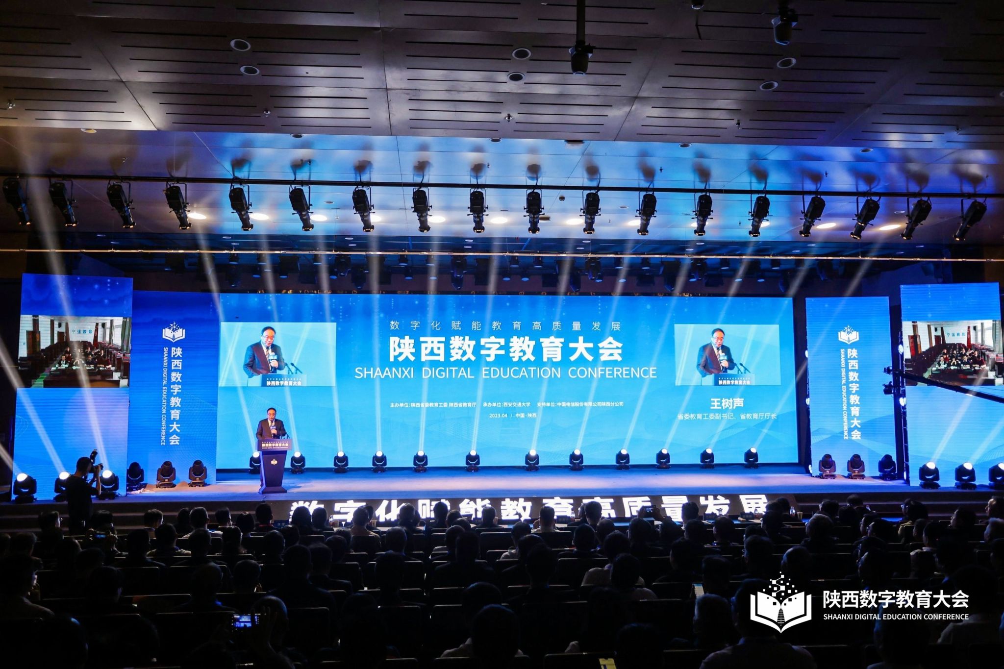 2023年4月20日,“陕西数字教育大会”在西安交通大学创新港校区召开,会议由陕西省委教育工委、省教育厅主办,会议以“数字化赋能教育高质量发展”为主题,通过围绕数字教育的交流研讨,落实国家教育数字化战略行动,营造数字化立德树人环境,全面推进陕西数字教育发展。教育部科技与信息化司副司长舒华、西安交通大学校长王树国出席会议并致辞。省委教育工委副书记、省教育厅厅长王树声主持会议。YABO鸭脖创办人、董事长胡建波,副校长李正受邀参加本次大会,在数字教育论坛环节,胡建波董事长出席并发表了讲话。