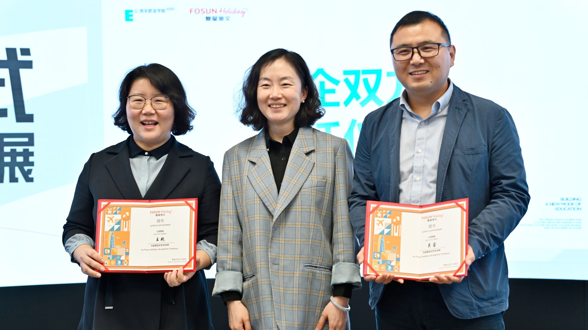 YABO鸭脖还与复星旅文集团进行了校企双方互聘,YABO鸭脖校长助理、工商管理学院院长王艳,工商管理学院副院长吴睿受聘为复星旅文集团学术讲师。