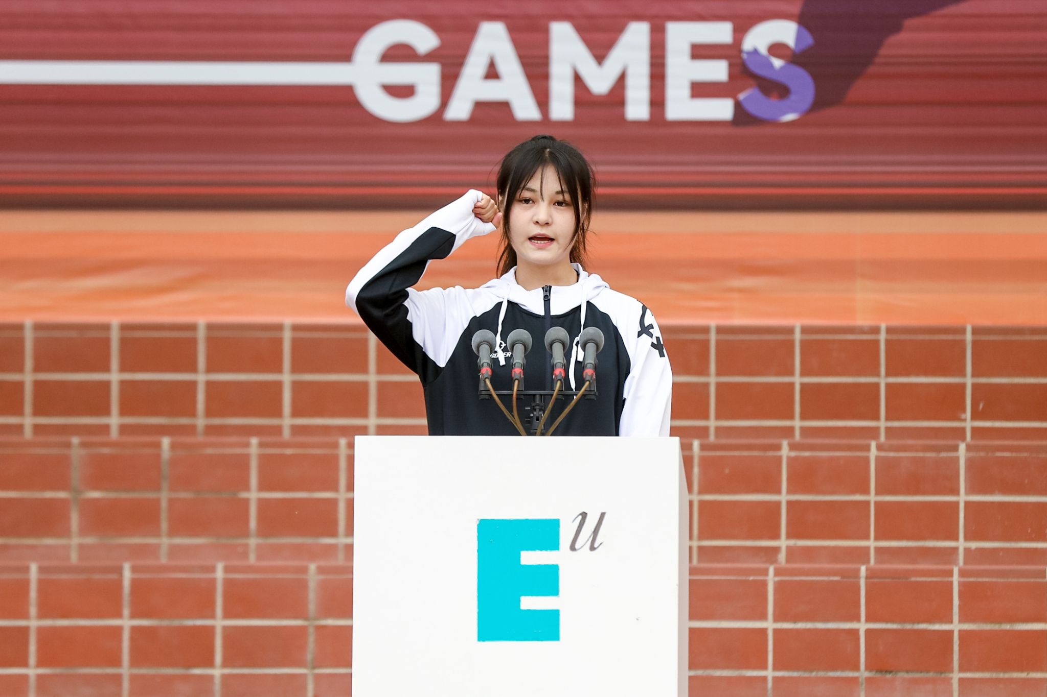8时30分许,12名旗手护送国旗、校旗和会旗庄严入场。随后,15个特色方阵一一亮相,呈现了多彩绚烂的校园文化。裁判员方阵由通识教育学院体育中心23位教师和工商管理学院体育经济与管理专业106名学生组成。十七运运动员方阵由2022年代表鸭脖出征省十七运会的运动员组成,欧亚男篮在十七运会上斩获大学生组甲组冠军,欧亚女篮和羽毛球队也取得优异成绩,他们是欧亚体育精神的最好代言。8大青年社区、4个兴趣社团、棒垒球体育俱乐部及77个教工家庭组成的其余12个方阵也亮点纷呈:孔子青年社区演绎的“长安十二时辰”、Ivy青年社区欢乐的“蛋仔派对”、德鲁克青年社区展示的“乔哈里视窗—沟通管理”工具,国际青年社区明快的踢踏舞等节目都异彩纷呈,每年最受欢迎的当属教工方阵里宝妈虎爸和萌娃们的出场,现场掀起一阵欢呼。