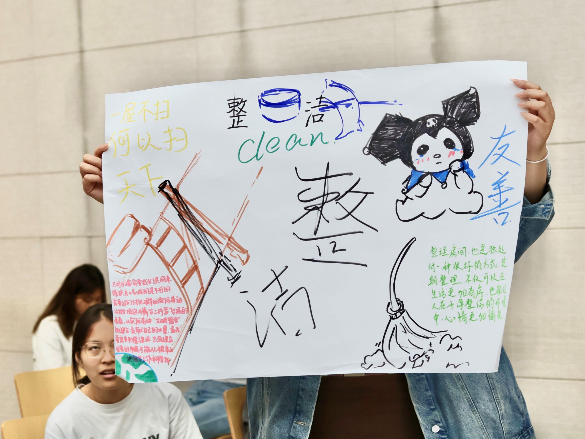 欧亚历来倡导“价值观”育人,各青年社区围绕“整洁、健康、友善、自律”的社区共享价值观,组织开展了多样的宣讲活动。国际&Ivy青年社区的宿舍标签设计鼓励新生们把“未来宿舍”绘于纸上,寻找青春的亮丽底色;孔子青年社区的价值观讨论既纳入了新生宿舍收纳评选又设计了“整洁”的头脑风暴活动,内容丰富有趣,让学生们在宿舍收纳的动作中思考提升个人整洁的有效路径,畅想未来四年如何与舍友共同努力自律且高效地维护宿舍整洁,加深对价值观的理解。