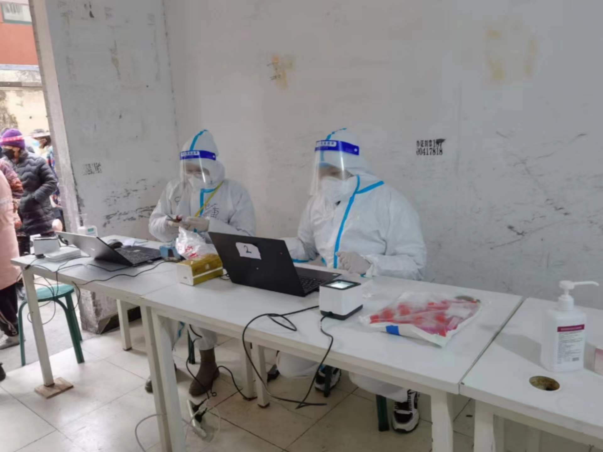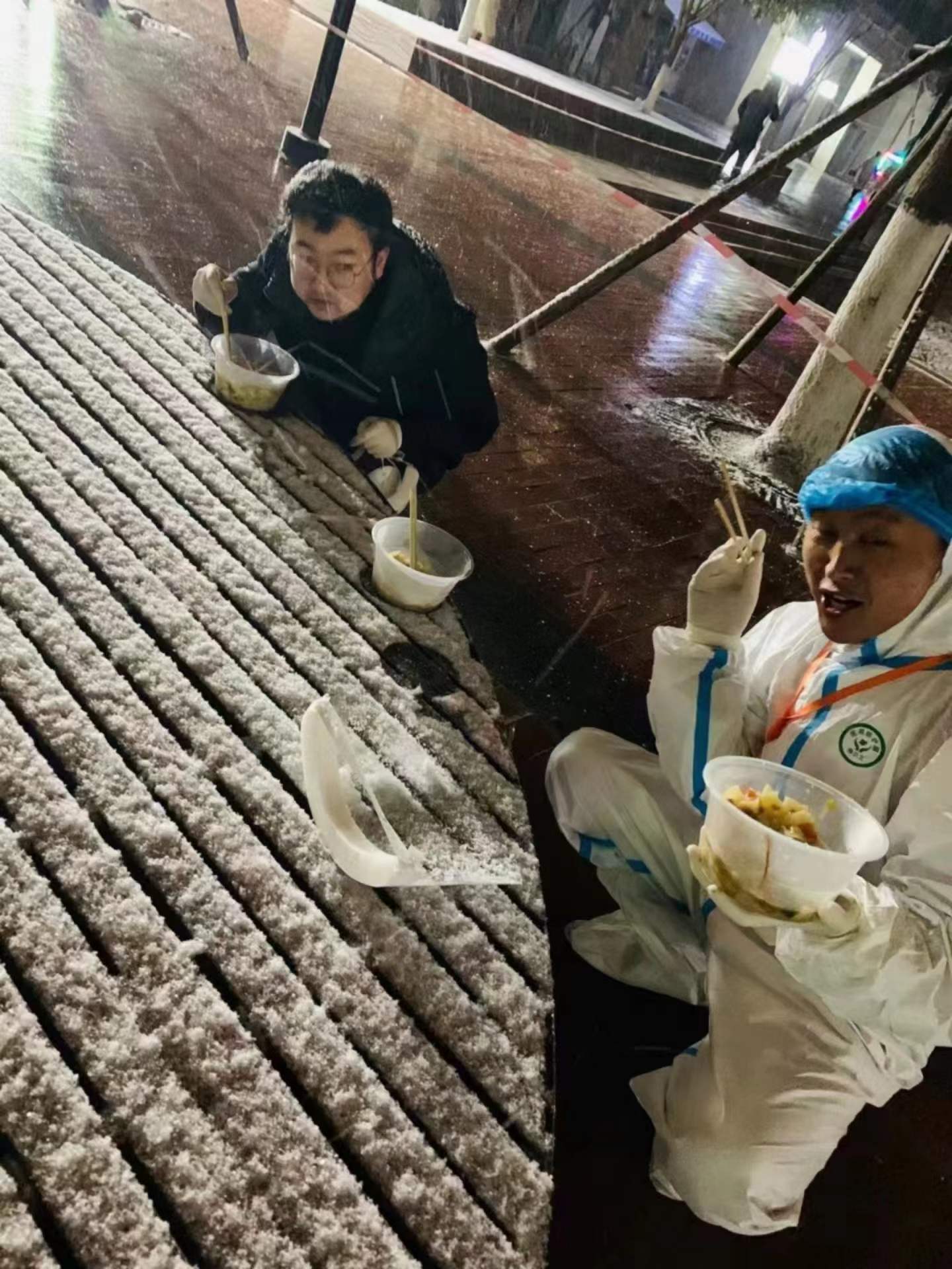 我们配合医护人员为社区群众做核酸,看着我们冻紫的手,再看看医护人员冻紫冻麻冻伤的手,心里挺难受的,但是在工作的时候总有群众送上暖宝宝,热水给我们取暖,说一声“辛苦你们了”,在这个寒冷的冬季,在无情的病毒面前,我们心里很暖,内心有一团火燃烧了起来,也更有信心抗击病毒,取得最后的胜利。、