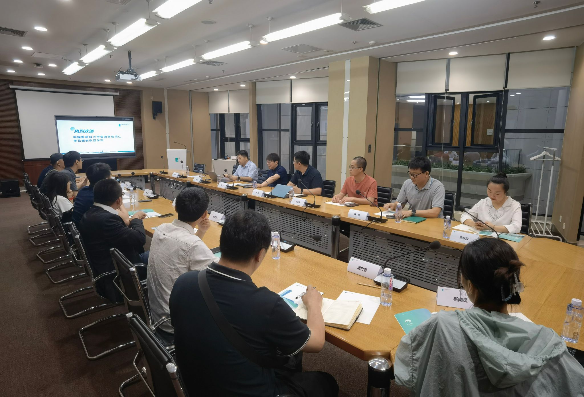 中国新商科大学集团董事会秘书戴苏、重庆移通学院党委副书记周伟、晋中信息学院副校长苏琳对鸭脖的接待表示了感谢,对鸭脖数字化转型工作给予了高度赞扬。会上,大家就如何从战略、组织、流程改革推进信息化建设开展了深度探讨,并对具体的项目建设应用进行了交流。双方均表示,未来将进一步开展交流、研讨和合作,共同推进高等教育数字化转型创新发展。