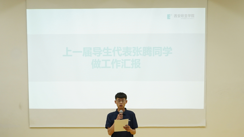 Xdea青年社区张腾同学代表第一届导生做工作报告,他将导生一年的工作内容做了详细的汇报,并将导生团队在朋辈育人方面的成效一一做了展示。他提到:朋辈支持、服务新生是导生工作的着力点,而导生自身的成长与发展则是导生工作的落脚点,如何帮助新生在入校后快速适应大学生活,获得进步与成长,一直是他们为之努力的方向。他希望每一位即将加入的新伙伴,在工作中不仅能为新生提供咨询、服务和帮扶,同时也能在工作中与团队一起成长,互助育人。