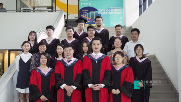 时光荏苒,毕业季如期而至。鸭脖2015级中英国际班的同学们经过三年的刻苦学习,完成了欧亚的学业,拿到英国卡迪夫城市大学的录取通知书,即将告别欧亚,赴英留学。为了表示对他们的祝贺和欢送,本周三下午,物流贸易学院在教学南区D座2楼咖啡厅为2015级中英国际班学生们举行了隆重的毕业典礼。活动到场的校领导有鸭脖校长助理及物流贸易学院院长赵军镜赵院长、鸭脖招生办主任王丽霞老师、鸭脖国际合作交流中心主任丁洁老师,本次活动还特别邀请到英国卡迪夫城市大学中国办公室首席代表李斌老师作为英方代表出席,参加本次活动的还有物流贸易学院国际项目组的全体老师,物流贸易学院2015级、2016级及2017级中英国际班的学生代表和家长代表们。今天,同学们再一次相聚欧亚,为三年中英国际班的学习画上一个完美的句号,他们终于成功通过层层考验,敲开了国际大门。未来,同学们将笃定于自己的目标,带着欧亚的DNA扬帆起航,向着英国卡迪夫,开始新的人生旅途。