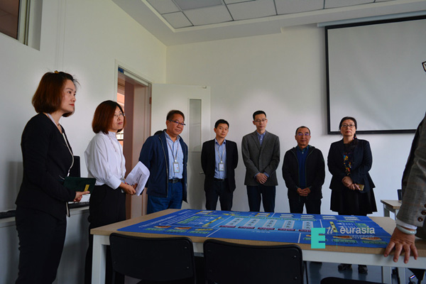 (图五)评审组专家考察沙盘实训室