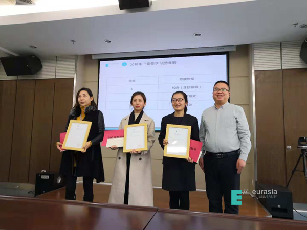 2018年12月11日下午,2018年度“读吧•欧亚”阅读表彰会在图书馆三楼视听室举行。活动旨在通过表彰以榜样的力量引领阅读热潮,营造浓厚的校园阅读文化氛围,助力学习知识型组织建设,提升师生阅读体验,吸引更多师生关注阅读、重视阅读、参与阅读。