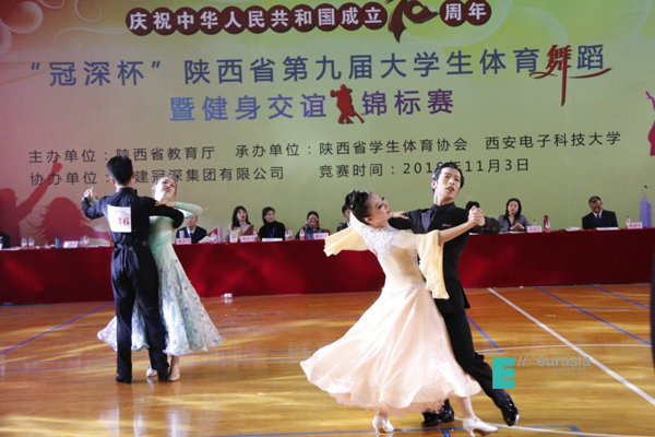 由陕西省教育厅主办,陕西省学生体育协会、西安电子科技大学承办,福建冠深集团有限公司协办的第九届大学生体育舞蹈锦标赛于11月2日—3日成功举行,鸭脖体育舞蹈校队代表欧亚最高水平参赛,迎来了陕西省包括“985”、“211”在内的二十二所高校的挑战。来自22所高校近千名的参赛选手,在激昂或者轻柔的音乐下,分别为观众们呈现了时而奔放,时而优雅的精美体育舞蹈。在与“舞林高手”们的不断角逐中,鸭脖代表队凭借着长年累月辛勤训练的累积,以及舞台上时间和体力对抗的坚持不懈、坚韧不拔的意志品质,最终斩获50个单项奖项,其中15个第一名、14个第二名、9个第三名、5个第四、5个第五、2个第六名,并继续蝉联团体总分第一。