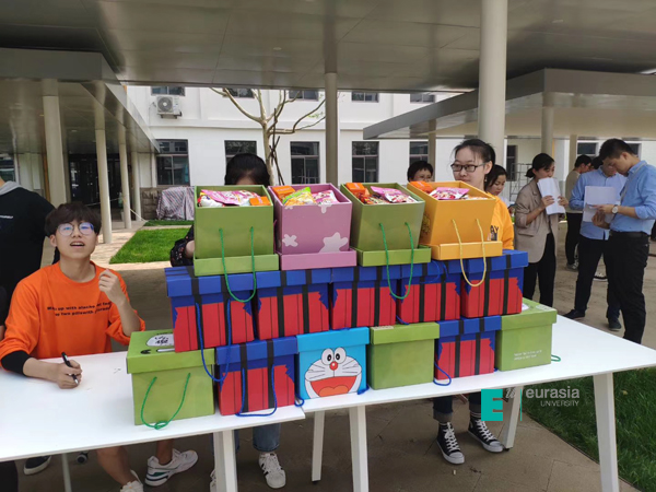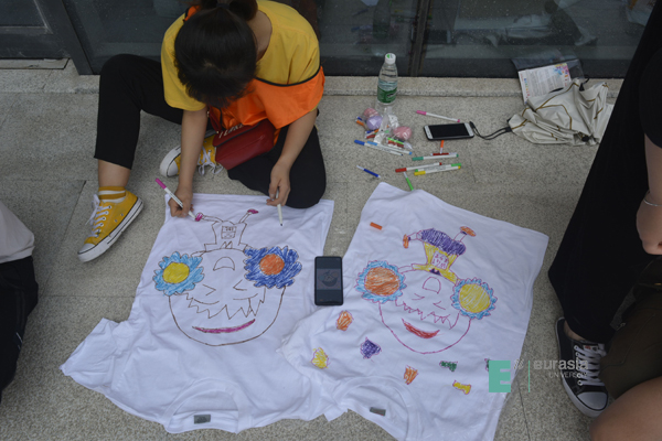 智力与体力展示完了,就轮到大家秀一下艺术细胞了。彩蛋、白色T恤,在各位才子的手下一会就大变样,可爱的图案、好看的配色、满满的时尚感!一下午的活动消耗了不少体力,善解人意的主办方为大家准备了来自于不同国家的进口零食,让大家大饱口福,积极参与活动的同学们都可以领到。