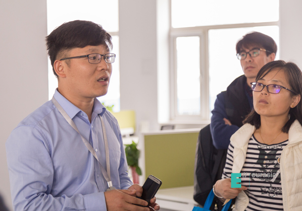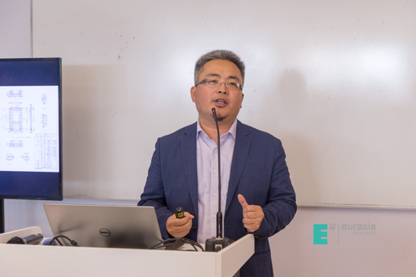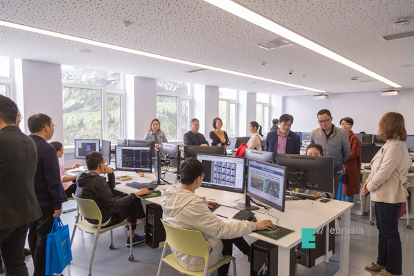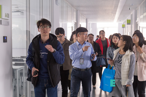 智能建造专业负责人杨光、教师徐缤荣,绿建中心负责人杨帆带领与会者参观了人居环境学院教学楼。参观者与三位老师就办学理念、专业建设、人才培养等交流探讨,还观看了各工作室学生项目成果、实训作品。大家一致称赞:欧亚学院为师生提供了健康舒适、具有国际范和幸福感的教学空间,为绿色校园、智慧校园建设提供了新范式。参会者还在广联达教育研究中心高级产品经理高华锋的带领下共同体验了广联达公司装配式认知教学、知识教学展示区和实操区。
