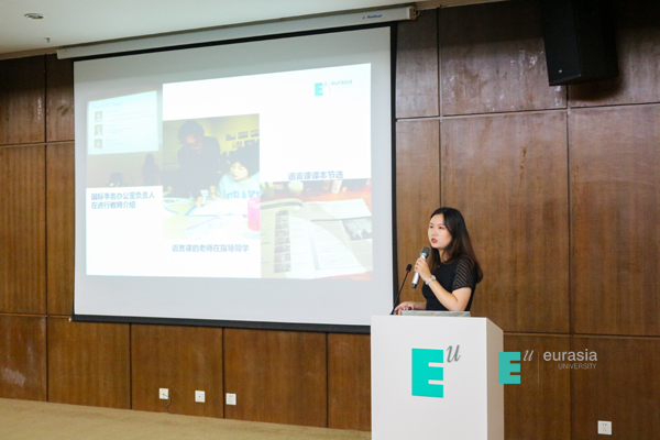 本次活动还邀请到了14级国际班的李怡帆同学,她目前属于放假期间,特地前来欧亚和同学们分享自己在英国这一年的学习和生活经验,希望对同学们有一定的帮助。首先来到异国他乡一定会有不习惯的地方,但是好在卡迪夫的国际办公室老师们都非常的热情,很乐意去帮助大家解决各种各样的问题。同时学校的师资条件和硬件设施都是非常出色的,为国际学生提供了更好的学习条件。并且国外的上课模式非常丰富,经常组织学生开展课外活动从而锻炼团队合作能力。除此之外,英国的交通也是非常便利,在课余时间可以去其他城市游玩也是非常方便的。需要强调的一点是英国的食物可能有些不尽人意,所以在国内的这几年大家一定要提升自己的厨艺,出国后自己下厨还是比较实惠并且比较满足自己的口味。在最后,李怡帆学姐非常感谢欧亚提供了这样一个机会,让她能有一个出国留学的机会,并且在这四年来,自己也是收获颇多,已经有了和同龄人不一样的见识。同时她希望有更多的同学加入国际班这个大家庭,感受国际化,让自己的生活有着更多的机遇和不一样的发展。