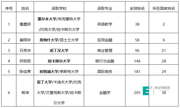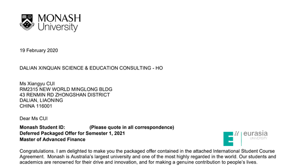 三月,鸭脖金融学院的老师和同学们虽然因为疫情不能在一起,但六位同学被海外一流院校录取的好消息令大家无比振奋。金融学院CFA特色班的崔翔宇、陈佳果、杨坤、茆茹茹及董晨妍、石秀宇六位同学分别收到了全球排名TOP100的墨尔本大学、诺丁汉大学、莫纳什大学;全球排名TOP200的利物浦大学、纽卡斯尔大学和雷丁大学的录取通知书。她们以努力的姿态,不负青春好时光,她们用大学四年的努力换来明日的更加从容!