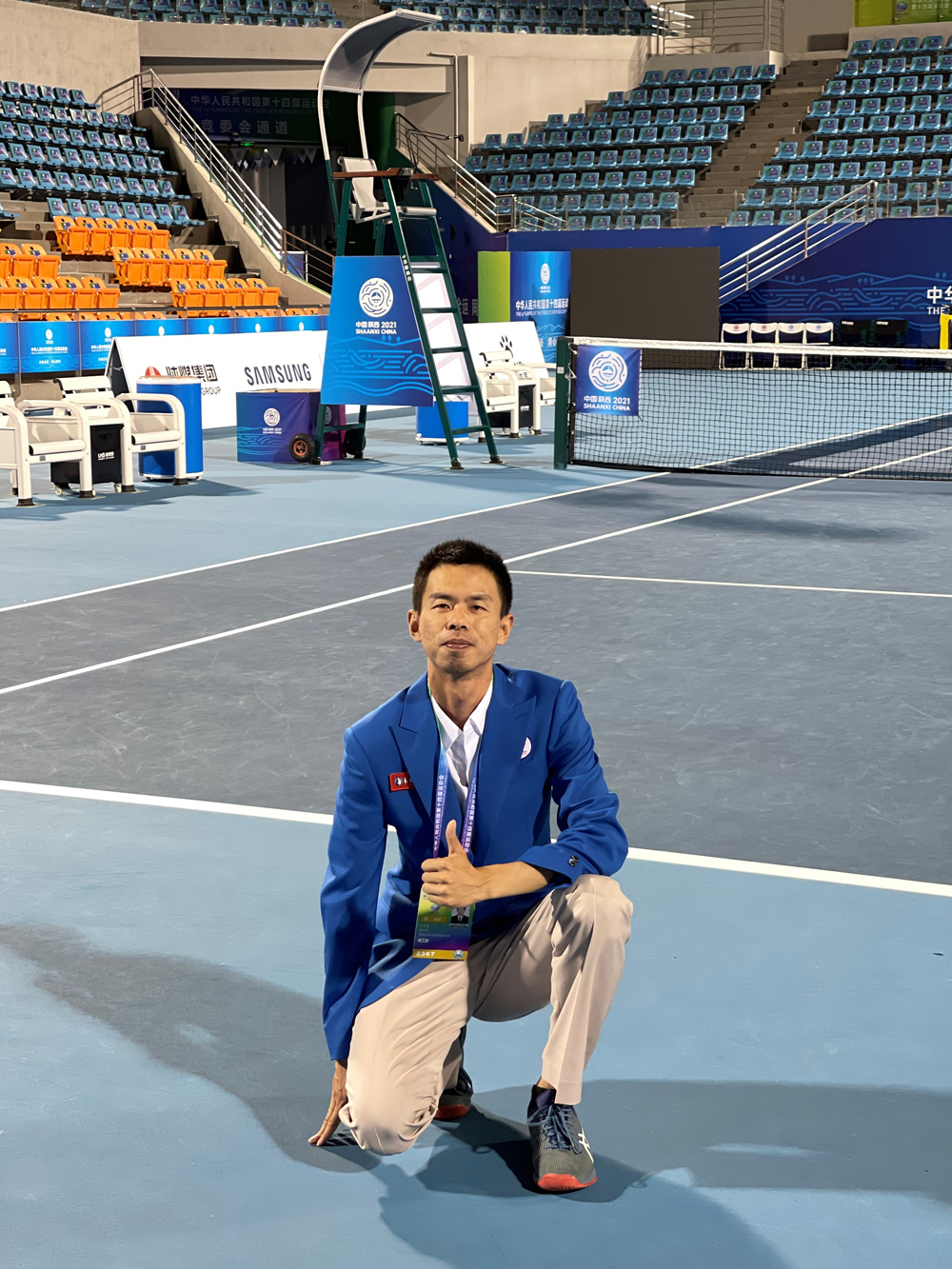 在为期14天的全运会网球赛程中,王志强老师凭借深厚的裁判专业知识,扎实的裁判临场实践能力和公平公正的裁判精神,在赛前培训、临场实践与结业考试中均以优异成绩通过考核。