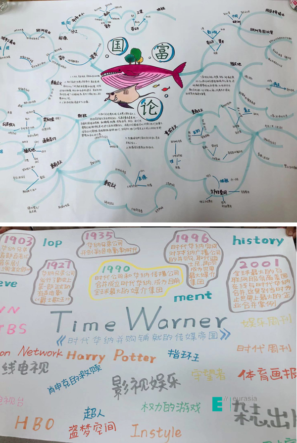 经过课程模块的初体验,经管类图书的阅读,以及关于实习就业的讲座等环节,学生们亲手绘制海报制订未来四年大学生涯的学习计划,绘制思维导图展示对书籍内容的理解,全面展示了经济、管理、贸易、商务等方面的知识带给他们的思考与启发。